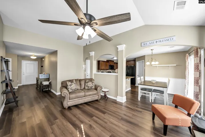 This charming home features the popular Pendleton Plan (Elevation C) with 1,439 square feet, 3 bedrooms, and 2 bathrooms. The family room welcomes you in with soaring 10-foot ceilings that make the space feel open, bright, and perfect for gathering with friends and family.The kitchen is both stylish and functional with granite countertops, a beautiful hardwood foyer entrance, and thoughtful touches the sellers have added like a custom backsplash, cabinet hardware, and wainscoting that adds character and warmth. The spacious primary suite offers a relaxing retreat with a double vanity and a large garden tub and shower combination.The sellers have also added several upgrades that make this home even more special, including updated flooring, framed bathroom mirrors, ceiling fans, gutters, a storm door, and freshly painted shutters and front door that add great curb appeal.Step outside and enjoy the covered patio overlooking a fully sodded backyard with a sprinkler system and wood privacy fence, creating a great space to relax, entertain, or simply enjoy the outdoors.This move-in ready home blends comfort, energy efficiency, and thoughtful upgrades, making it a wonderful place to call home. Disclaimer: CMLS has not reviewed and, therefore, does not endorse vendors who may appear in listings.
