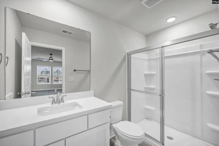 Enjoy a spare bedroom on main level with ensuite private full bathroom. Master bedroom & guest bedrooms on second floor just off loft area. Tiled laundry room on 2nd floor next to master bedroom. Master bedroom is uniquely large in this plan. Master bathroom has tiled flooring, white shaker cabinets, quartz countertops. Ceiling fans in master bedroom & great room. Kitchen incl. Whirlpool stainless steel fridge, dishwasher, disposal, built in microwave & gas cooking stove. White shaker cabinets, quartz countertops, tiled backsplash & undermount sink with pull out faucet in kitchen. Recessed can lighting in kitchen. Tons of countertop space with overhang for additional seating. Woodgrain laminate flooring in entry, powder bath, hall, eat in area, kitchen & great room. Nine-foot ceilings on first floor. Garage area is fully painted with garage door opener. Architectural shingles with full gutters. Driveway is double wide that can fit up to 4 cars. Back yard has 100 sq ft patio along with 8-foot-long white vinyl partitions & fully sodded back yard too. Carriage light above garage door & covered entrance way outside front door. Blinds on all heated windows. HOME UNDER CONSTRUCTION June completion – Disclaimer: CMLS has not reviewed and, therefore, does not endorse vendors who may appear in listings.