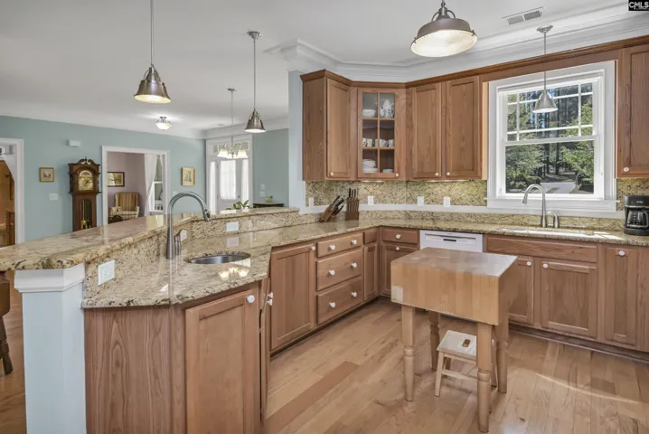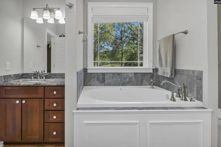 Beautiful Executive Home in Gated Golf Community. This luxurious home is located on the elite street of Cobblestone Park and sits on the 6th fairway of the Black course at Cobblestone Golf Club. The first level includes a 3 car side-entry garage, laundry room with sink, cabinets, countertops, and sewing nook. There is a gorgeous kitchen with granite countertops and tiles backsplash, prep sink, double oven, gas cooktop with a spacious pantry with cabinets and sink. The kitchen is open to the eat in area, great room and dining/florida room. The great room and dining room share a double-sided fireplace. The dining room has a wall of windows with golf course view as well as an office nook and door to the back porch. The primary suite boasts a bay window and spacious bathroom with separate shower and garden tub with his and hers barn door closets. On the main floor is another primary/in-law suite with private bathroom and large walk in closet. There are hardwoods throughout the first story, LVP floors in the lower level and high quality carpet on the second story. The second story contains a bedroom with large built in desk and cabinets as well as a guest wing with 2 bedrooms with walk-in closets and bathroom. Also upstairs is a heated and cooled storage room and unfinished bonus with lots of potential added square footage. The basement has a full bathroom and 3 large rooms with 2 bay windows, walk-out to the covered porch and it’s own HVAC system and dehumidifier. There are ceiling fans, granite countertops and walk-in showers with seats throughout. Cobblestone Park is an award-winning gated neighborhood with a guard-secured entrance. Amenities include a private clubhouse with a restaurant and bar, a 27 hole golf course, gym, tennis courts, basketball, & pickleball courts and miles of sidewalks. Convenient to I 77, military bases and new Blythewood development Disclaimer: CMLS has not reviewed and, therefore, does not endorse vendors who may appear in listings.