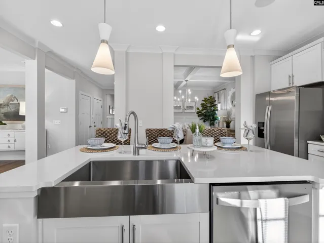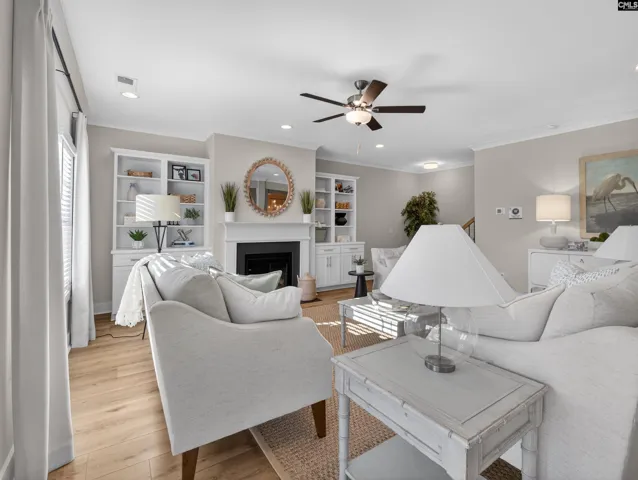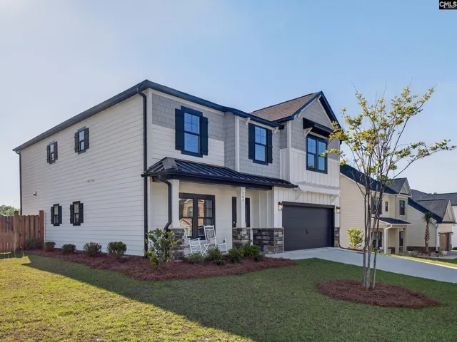 Welcome to Collins Cove’s stunning Model Home, the Brantley II C—featuring a fully fenced backyard with a dedicated firepit area, perfect for entertaining or enjoying evenings outdoors from the comfort of the screened porch. This beautifully designed 5-bedroom, 3-bathroom home offers approximately 3,000 square feet of thoughtfully crafted living space. The exterior showcases a sophisticated blend of stone and Hardie Plank siding, complemented by striking black windows and inviting curb appeal. Inside, you’ll find 9-foot ceilings on the main level and an open-concept layout designed for modern living. The spacious living room features a cozy gas fireplace with built-in bookshelves, seamlessly flowing into a deluxe kitchen equipped with stainless steel appliances—including a gas cooktop with hood, built-in wall oven and microwave combo, a large island with a white cast iron farm sink, quartz countertops, tile backsplash, and soft-close cabinetry. The formal dining room impresses with a coffered ceiling, while the main-level 5th bedroom (or home office) includes a walk-in closet and access to a full bath—ideal for guests. Upstairs, the luxurious owner’s suite offers a tray ceiling, dual walk-in closets, and a spa-inspired bathroom complete with a tiled shower, garden tub, separate water closet, and double vanity. The second level also includes three additional bedrooms, a versatile flex/living space, and a convenient laundry room. Additional upgrades include; Craftsman-style trim package, Brushed nickel lighting, Oak staircase, Luxury vinyl plank flooring in main areas, baths, and laundry; Upgraded carpet in bedrooms and flex room;Bluetooth kitchen speakers; Tankless gas water heater; Sprinkler system, gutters, and garage door opener; Insulated garage door. Disclaimer: CMLS has not reviewed and, therefore, does not endorse vendors who may appear in listings.