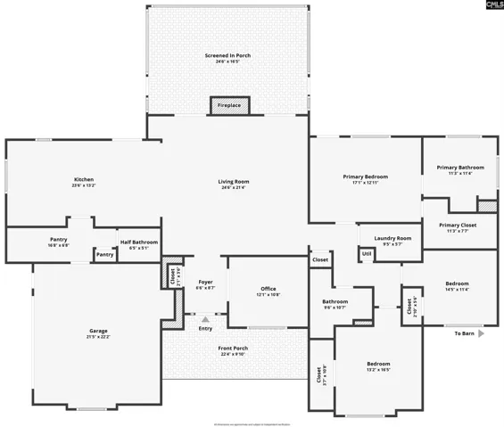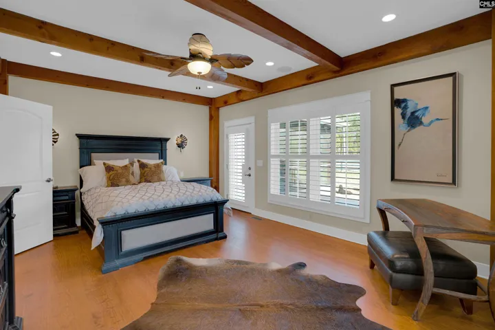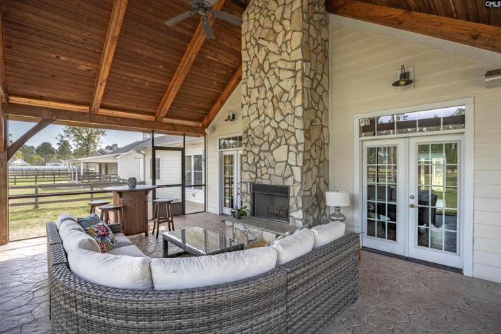 Beautiful Three Runs Plantation awaits you! If you’ve been searching for a one-story home offering equestrian bliss and a private retreat—this is it. This 5-car garage property is a timber frame and panel home, built for durability and efficiency. Inside, the open floor plan features exposed Douglas Fir beams, a soaring cathedral ceiling, and a warm, inviting great room. Locally milled heart pine floors run throughout the main living areas.The kitchen offers custom cabinetry, granite countertops, stainless appliances, and a spacious pantry, all open to the dining area. A gas log fireplace with a fieldstone surround adds charm. The owner’s suite includes exposed beams and a spa-like bath with double vanity, Jacuzzi tub, separate shower, and walk-in closet. Two additional bedrooms, a full bath, and an office or fourth bedroom provide flexibility. Enjoy outdoor living with a Trex deck, screened porch, and second fireplace. The barn features 3 stalls (room for 4), wash and grooming stalls, tack room, electric, water, and fans. Five fenced pastures include run-ins. A detached 3-car garage with workshop, internet, and bath offers guest or income potential. Community trails, arenas, clubhouse, gym, and pool nearby. Disclaimer: CMLS has not reviewed and, therefore, does not endorse vendors who may appear in listings.