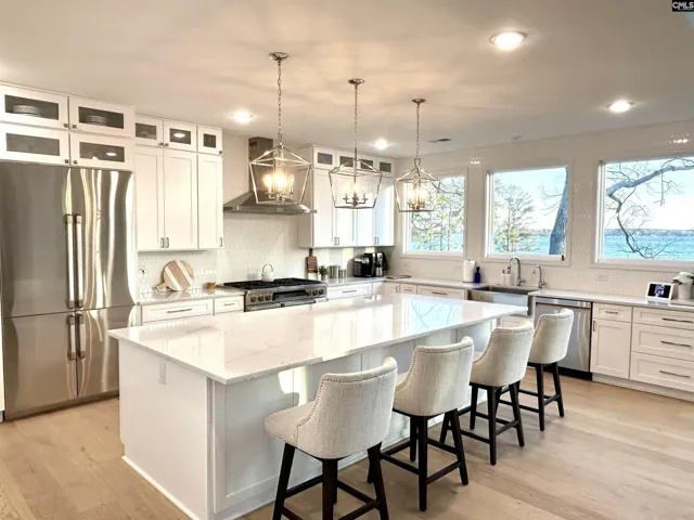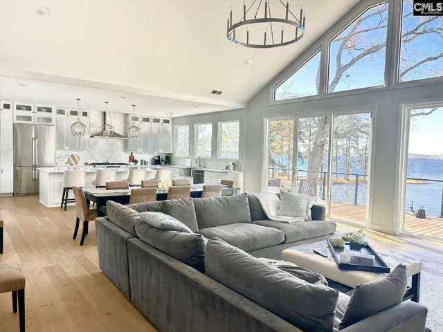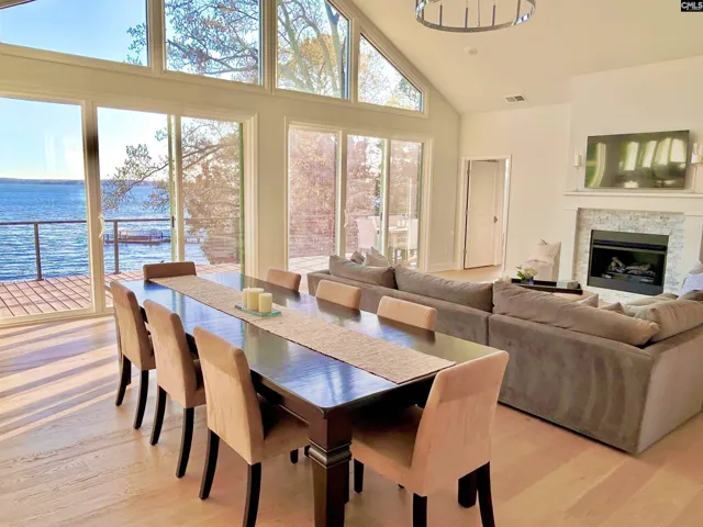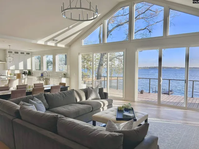 Gorgeous lakefront home on over half an acre with private dock, boat ramp, and 130 ft of lake frontage. Experience take your breath away views as you step inside this 2022 newly built home with NO HOA.An ultimate lakefront estate with YEAR Round deep water, panoramic views from nearly every window, and sunrise and sunset views each day.Enter through double front doors to the open-concept main living area framed by expansive lake view windows.At the heart of the home is the chef’s kitchen, designed with every luxury in mind, quartz countertops, soft close cabinets, 10 ft x 5 ft island, and stainless appliances. The primary suite is a private sanctuary with sweeping lake views, direct access to the deck, and a spa-inspired bath with dual vanities, an oversized walk-in shower, soaking tub, and huge his and her closets. The main level also includes a spectacular dining and living room that flow seamlessly from the kitchen with more stunning lake views. The dining room is large enough to accommodate a grand 12-person or more table—perfect for memorable gatherings.The living room adds to more wonderful memories with the sweeping lake views and a cozy gas fireplace.Other special things to note is the 2000 sq ft walkout basement that is framed with 2 bedrooms, 2 full baths, office, workshop, storage room, and huge great room with floor to ceiling picture windows – and conveniently plumbed for 2 baths and kitchen area. The home also boasts a beautiful paver driveway, lake fed irrigation system, 500 sq ft deck, Smart thermostat, and Tankless water heater.Designed for comfort, luxury, and entertaining, this incredible property transforms daily living into a resort-like lake life every day. Disclaimer: CMLS has not reviewed and, therefore, does not endorse vendors who may appear in listings.