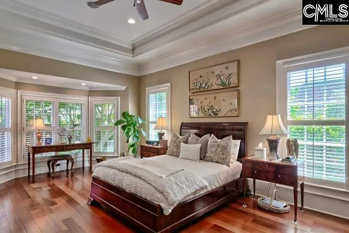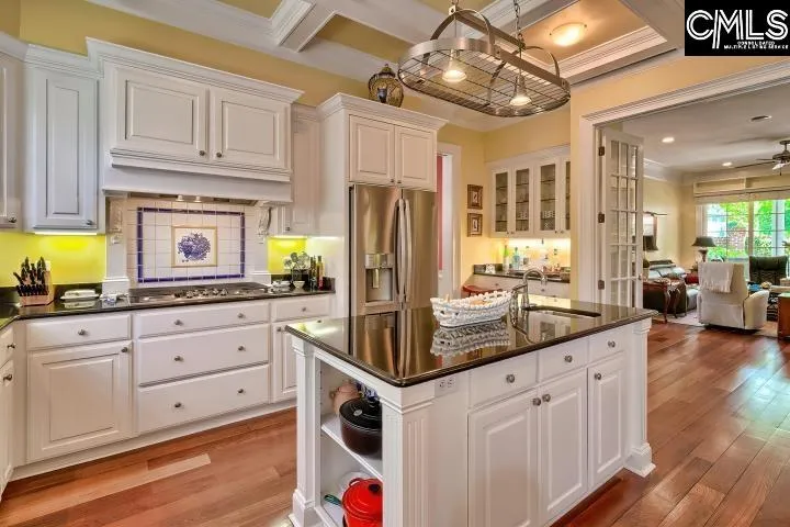 This impeccably maintained home offers custom features galore that set it apart from the rest! Extensive Moldings, wains coting, stunning Built-ins, wide plank Brazilian Cherry Floors throughout main level, Coffered Ceiling in Kitchen & Tray Ceiling in Master (high ceilings in other areas). Lovely Foyer flanked by Formal Dining Room w/built-in shelves & Formal Living Room; Family Room beyond with fireplace, built-ins & wall of glass doors that opens to the lovely veranda with coffered ceiling. Wonderful eat-in Kitchen with loads of cabinets, built-in desk, island w/prep sink & recent stainless appliances (gas counter cooktop, advanitium microwave & warming drawer). Spacious Main Level Primary Suite w/luxurious Bath & custom walk-in Closet. 2 Bedrooms up from main stairs, each with ensuite Baths. 4th Bedroom is FROG w/full Bath & separate rear stairs. Abundant unfinished space between FROG & 2nd Level Bedrooms would make a great recreation room. Enjoy the serenity of the wonderful Veranda that overlooks the beautiful English Garden area surrounded by 6′ Brick Wall. Recent 50yr architectural shingle roof & brand new water heater. The garage in this outstanding home is climate controlled & has epoxy flooring. The Preserve is a lovely, gated community with pool/cabana & walking trails. Very convenient to downtown, shopping, restaurants & interstates.Click on “virtual tour” for interactive floorplan Disclaimer: CMLS has not reviewed and, therefore, does not endorse vendors who may appear in listings.