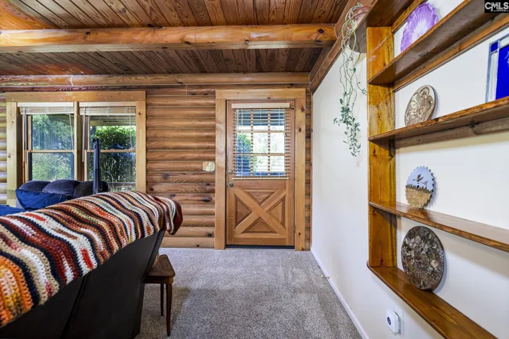 Welcome to 103 Cardinal Cove Rd. You don’t find many opportunities for a true log home in the Irmo area, and you certainly don’t find them off Marina Road and Liberty on the Lake and Nautical Boat Club, tucked back on a quiet cove just a short walk from the shores of Lake Murray. This is the kind of property people drive past and slow down to look at. Exposed beam ceilings, a wood-burning masonry fireplace, and real log construction give this home a warmth and character that no cookie-cutter neighborhood build can replicate. Charming and well-kept, this home is well-maintained. New windows mean lower energy bills and no drafts. The HVAC and all ductwork were replaced in 2018 and are on an active maintenance plan. The roof is a 35-year architectural shingle installed in 2009. A whole-home Generac generator, still under warranty, means you stay powered on no matter the weather. A pre-inspection was completed, so you’re buying with genuine peace of mind, not crossed fingers. The master suite is a true retreat: his-and-her closets, a private bath, and a spa multi-head shower that turns a Tuesday night into something worth looking forward to. The living room centers around that masonry fireplace, and with an estimated cord and a half of split wood included with the home, you’re set for fires all season long. The kitchen features luxury vinyl plank flooring, stained cabinetry, an eat-in space, and a pantry, which is practical and easy to maintain. Outside, covered front and back porches plus a screened porch mean you can enjoy the sounds of this wooded lot in any weather. The deck has been maintained and restained. There’s a workshop and storage shed for the hobbyist or DIYer. And the yard is genuinely productive, with two peach trees, a fig tree, elderberry bushes, a muscadine vine, and established herb plantings of oregano, rosemary, and more. For the 2026-2027 school year, zoned for Lexington/Richland Five, Ballentine Elementary, Spring Hill Middle, and Chapin High, one of the most sought-after school districts in the entire Midlands. If you know, you know. Eligible for FHA, conventional, and USDA rural housing financing. Disclaimer: CMLS has not reviewed and, the