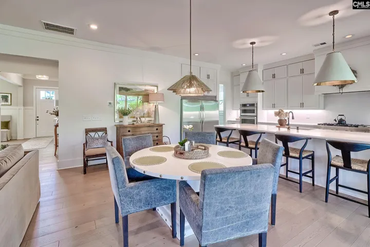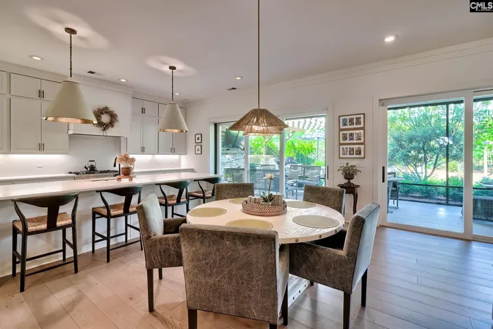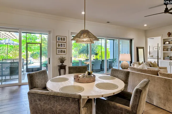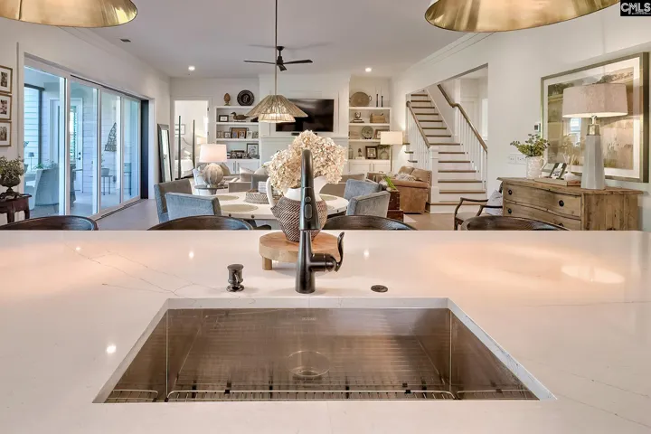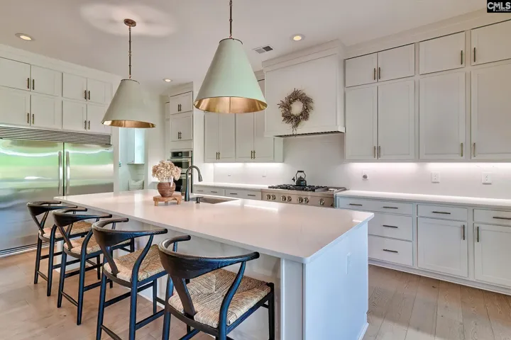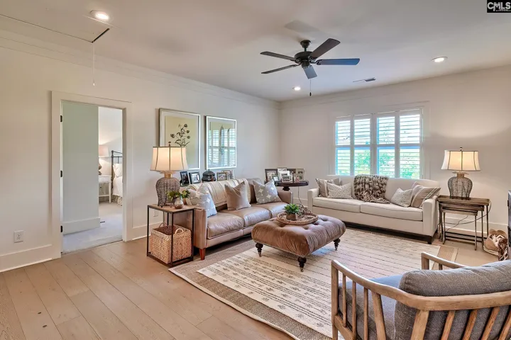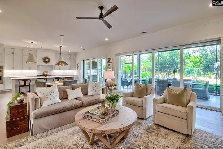 Welcome to this beautifully custom-crafted four-bedroom home located in the Grove in Saluda River Club. Built in 2022 and featuring custom finishes in every room, the main living area showcases a bright, open floor plan that seamlessly connects the living room, dining area, and chef-inspired kitchen, all accented by engineered hardwood floors. Expansive windows and sliding doors fill the space with natural light and create effortless indoor–outdoor living. The living room features a fireplace flanked by built-in cabinetry, while the gourmet kitchen includes an oversized island with seating, custom cabinetry, a walk-in pantry, quartz countertops, and stainless steel appliances. The primary suite is conveniently situated on the main level, providing both privacy and ease of living. The spa-like bathroom features double vanities, a large walk-in shower, and two spacious walk-in closets. Upstairs, three additional bedrooms—each with a private bathroom—and a loft provide ample space for family and guests. Each level features a powder bathroom. Outside, the screened-in porch features an outdoor fireplace and overlooks a large, private lot complete with a custom grilling area, gas fire pit and professionally designed landscaping. Other upgrades include a full-home Generac generator, epoxy garage floors, custom storage, etc. Located in the award-winning Saluda River Club, residents enjoy access to amenities including two clubhouses, two pools, a fitness center, walking trails, a dog park, and access to the Saluda River. Disclaimer: CMLS has not reviewed and, therefore, does not endorse vendors who may appear in listings.