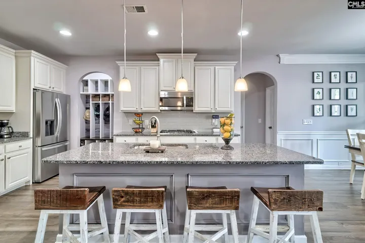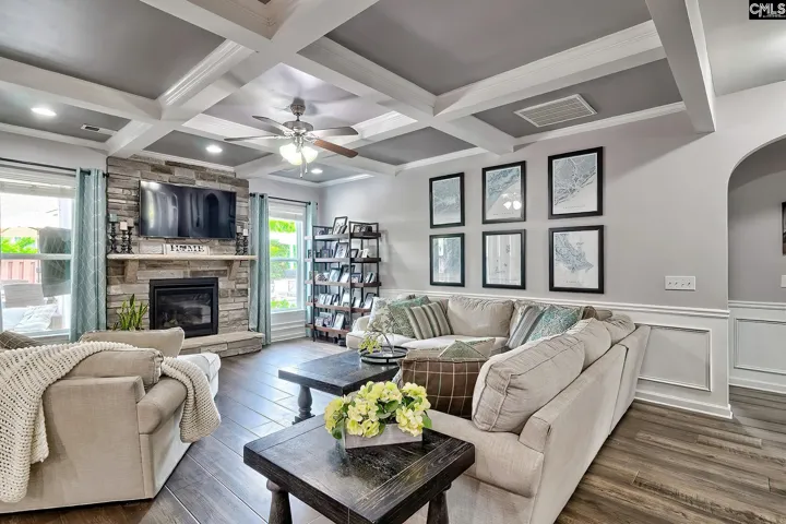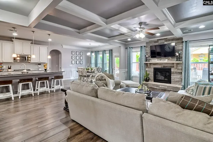 Are you looking for a place to unwind after a busy day? A vacation destination you can visit every day? Look no farther. Welcome home to 212 Morning Dew Drive. Upon entering you are greeted with elegant LVP flooring and heavy molding. Offering a flex area that excites your eyes with its soaring 2 story ceiling with an extremely open floorplan, including family room, kitchen and breakfast area boasting coffered ceilings, extra-long island, custom fireplace, abundance of natural light, granite countertops, recessed lighting, 42″ cabinets, travertine tiled backsplash, private office area, huge pantry, and mudroom. A massive media room for the family to enjoy for movie night or for the guys to game the night away. The backyard is a private oasis offering a fire pit, covered patio, grill area, stone seating a much more. Village Green is very centrally located in Lexington, only minutes away from fine dining, shopping, award winning Lexington 1 schools (River Bluff High School, Lakeside Middle School) and Lake Murray. Disclaimer: CMLS has not reviewed and, therefore, does not endorse vendors who may appear in listings.