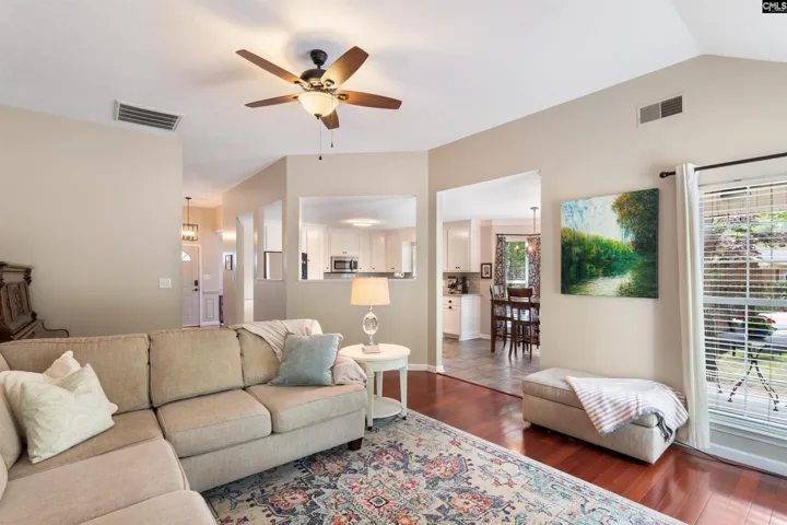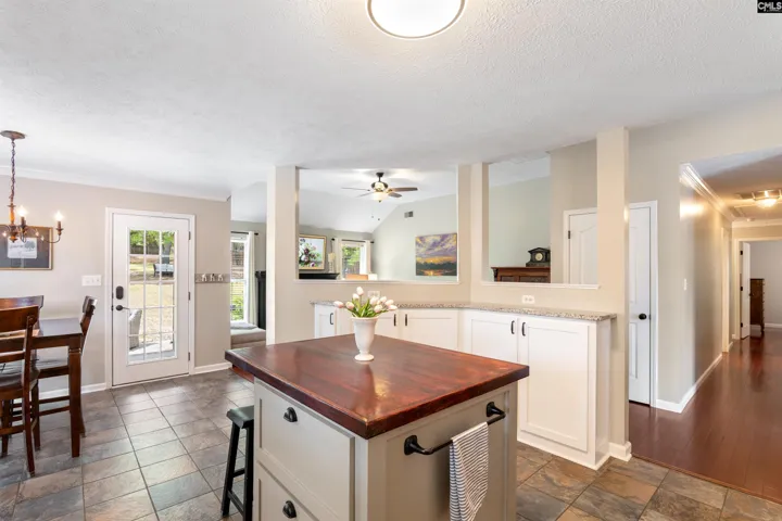 Been searching for that single-story Lexington home with updates, privacy, and a backyard that feels like a private park? Then you don’t want to miss this rare find in Bridle Ridge West.Set on a generous .75-acre lot, this all-brick home is framed by mature trees and a level of privacy that’s increasingly hard to find. The circular driveway and established landscaping create a welcoming first impression with standout curb appeal.Step through the front door to find a bright, open-concept interior designed for everyday living and easy entertaining. High ceilings and natural light fill the living room, while engineered hardwood floors, a custom fireplace mantel, and full-length windows add warmth and character throughout.The kitchen has been thoughtfully expanded and remodeled with both function and style in mind. Custom shaker-style cabinetry, granite countertops, tile backsplash, and an island provide generous prep and storage space. The eat-in area opens directly to the covered back porch—making outdoor dining and entertaining a breeze.The primary suite is tucked toward the back of the home, offering privacy and peaceful views of the backyard. With a tray ceiling, great natural light, soaking tub, separate shower, and walk-in closet, it’s a comfortable retreat. Two additional bedrooms share the refreshed hall bathroom.Step outside and you’ll see what truly sets this home apart. The backyard offers a rare combination of space and privacy, with mature trees, birds, and multiple areas to sit and unwind. It’s a setting that feels more like a private park than a typical backyard.Need more? Don’t miss the formal dining room with custom heavy molding and wainscoting, along with a dedicated laundry room, two-car garage, and circular driveway. The bonus room provides flexible space ideal for a home office, playroom, home gym, or additional living area.Conveniently located just minutes from award-winning Lexington One schools, shopping, and dining, this is exactly where you’ll want to be. Schedule your private showing today. Disclaimer: CMLS has not reviewed and, therefore, does not endorse vendors who may appear in listings.