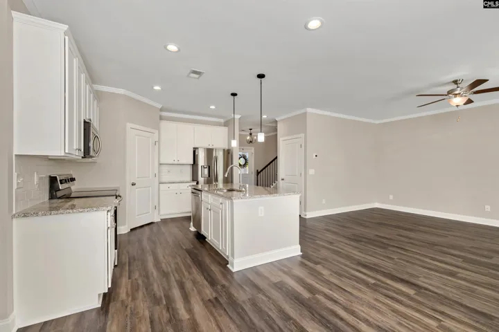Don’t miss your opportunity to own a beautiful waterfront home in Old Ferry Landing. This well-maintained residence offers 5 bedrooms, 3 bathrooms, and approximately 2,590 square feet, all with the added benefit of no HOA. Upon entry, you are welcomed by a versatile flex room, ideal for a playroom, home office, or fitness space. The home then opens into a spacious open concept living area and eat-in kitchen, perfect for entertaining. The kitchen features granite countertops, a large center island, and a walk-in pantry, offering both functionality and style. The main level includes a guest bedroom and full bathroom, providing flexibility for visitors or multi-generational living. Upstairs, you will find a conveniently located laundry room and additional living space. The expansive owner’s suite overlooks the peaceful pond, creating a private retreat. The ensuite bathroom features a garden tub, double vanity, and a large walk-in closet. Three additional bedrooms, each with walk-in closets, share a full bathroom. Enjoy serene waterfront views right from your backyard, creating the perfect setting to relax and unwind. Ideally located just minutes from downtown Camden’s historic district, shopping, dining, and the renowned Carolina Cup, this home also offers convenient access to Columbia, Fort Jackson, McEntire Joint National Guard Base, Shaw Air Force Base, and Lake Wateree providing an excellent balance of accessibility, recreation, and lifestyle. Be prepared to fall in love at first sight schedule your private showing today. Disclaimer: CMLS has not reviewed and, therefore, does not endorse vendors who may appear in listings.