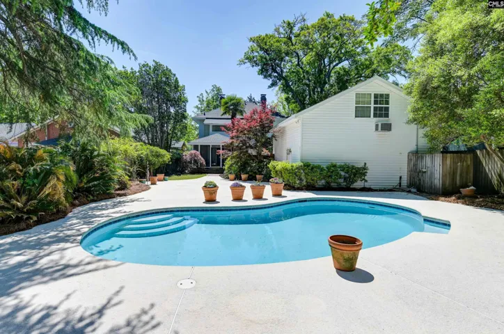 Own one of the most amazing in-town properties in historic Cottontown only three blocks from The BullStreet District with area shopping, dining, entertainment, minor league baseball stadium (home to the Fireflies), USC’s new location for the School of Medicine, and 20 acre Page Ellington Park with large dog park. Residents of Cottontown enjoy a vibrant arts community and yearly Cottontown Art Crawl; close proximity (mere blocks) to local businesses like Indah Coffee, Vino Garage, The War Mouth, Curiosity Coffee, Il Focolare Pizzeria, etc.; walkable distance to Soda City Market (weekly producer-only market), Earlewood Park, Marshall Park, etc; and a short drive to the SC State House, USC, the Vista, and Five Points w/easy access to I-77 and I-26. Features include a wide front porch; breathtaking formal foyer and staircase; heart pine floors, heavy intricate molding, and high ceilings throughout; formal living room w/fireplace; formal dining room w/fireplace, built-in china cabinet, and glass French doors; large updated gourmet kitchen w/granite countertops, tile backsplash, island, gas cooktop, double oven, stainless appliances, hammered copper sink, and adjoining breakfast room w/additional cabinets and pantry; downstairs den that could be used as a fourth bedroom; renovated downstairs half bathroom; huge laundry room w/storage; master suite w/dual closets (one walk-in), private bath w/double vanity, separate water closet, and large shower; two additional large bedrooms w/shared second full bathroom; large screened back porch; beautiful mature landscaping; recently renovated 13,000 gallon, inground, gunite pool (w/new plaster, GFI and pool pump); and two bay detached garage w/492 square foot of finished studio space above. Additional updates include a new roof, new gas lines, new ductwork and insulation in the crawlspace, and new tankless water heater (2025); new 12mil vapor barrier and garage door opener (2026); extensive plaster work / painting (2025-2026); recent ductwork and HVAC unit in attic (2019) and downstairs HVAC unit (2018). Both systems are split units w/gas heat. Disclaimer: CMLS has not reviewed and, therefore, does not endorse vendors who may ap