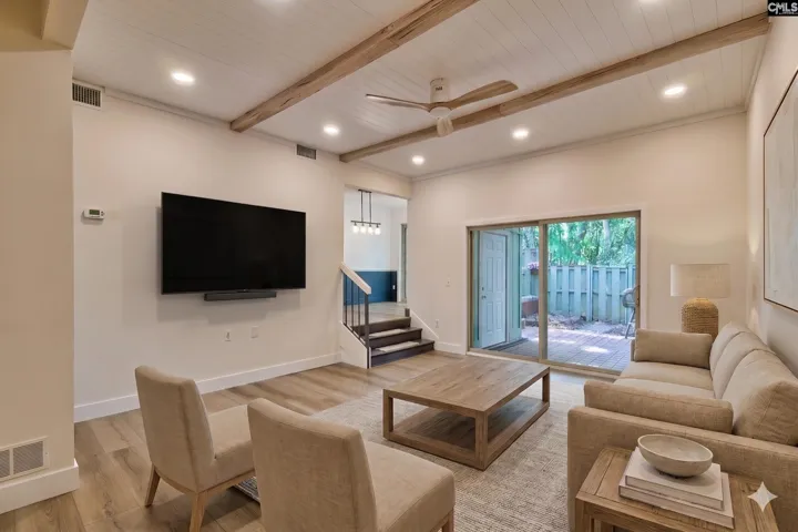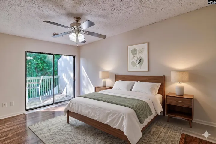 Renovated condo at The Village at Lake Murray with lake access, including a ramp and dock, plus the potential to rent a slip and keep your boat in the water year-round (ask for details). 314 Dryden Lane is just minutes from shopping, restaurants, and the Lake Murray Dam, and stands out in this gated community due to the recent quality renovations. Updates include a completely gutted kitchen with quality soft-close cabinets, new stainless appliances, designer black tile flooring, and quartz counters that lead into the dining room with access to the upper and lower back patios. The living room has also been upgraded with new LED recessed lighting, a remote-controlled fan, and shiplap ceiling and beam details. A large framed mirror on one wall brings the outside in and complements the space. This area also offers easy access to the fenced patio, which includes a gate leading to the common grounds and is just a short walk to the clubhouse, pool, and lake. Back inside, a renovated half bath and laundry room are also located on the main level. Upstairs, you’ll find the owner’s suite with transom lighting, access to the upper deck, a huge closet, and a renovated full bath. The second bedroom is also on the upper level and offers plenty of closet space. HOA covers the clubhouse, pool, exterior and front yard maintenance, Spectrum TV and internet, sprinklers, trash, green areas and common spaces and gated access to the neighborhood. Minimum of 6 month rental possible. Disclaimer: CMLS has not reviewed and, therefore, does not endorse vendors who may appear in listings.