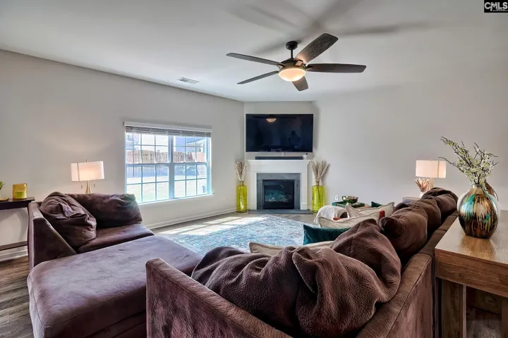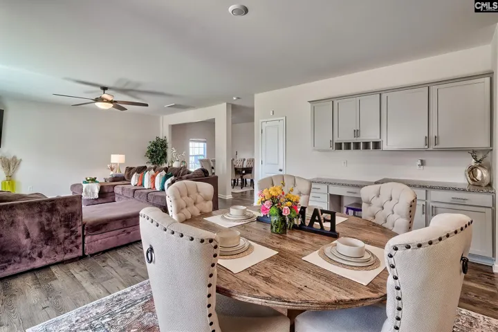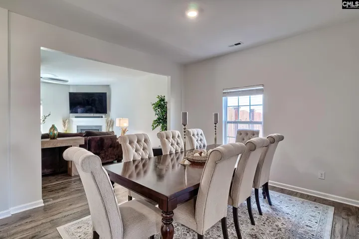This beautifully designed 4-bedroom, 3.5-bath home offers an inviting layout ideal for both entertaining and everyday living. Upon entry, you’re welcomed by a versatile formal living space,perfect for a home office, playroom, or sitting area. Luxury vinyl plank flooring flows throughout the entire main level. The heart of the home seamlessly connects the formal dining area, spacious great room, and a dream kitchen designed for gathering. The kitchen features an eat-in area, large island with bar seating, granite countertops, stainless steel appliances, gas range, and a pantry to meet all your storage needs. Upstairs, all bedrooms are thoughtfully positioned for privacy. The primary suite showcases vaulted ceilings, a generous walk-in closet, and a private ensuite bath complete with a double vanity, garden tub, separate shower, and water closet. Two additional bedrooms share a well-appointed bathroom with double vanity. A fourth bedroom serves perfectly as an in-law suite, offering its own private bath and large walk-in closet. A spacious loft on the second level provides flexible living space,ideal for a media room or study area. Step outside to a fenced backyard designed for outdoor living, featuring an extended patio perfect for relaxing or entertaining. Residents of this community enjoy access to exceptional amenities, including a swimming pool, playground, and a scenic pond for fishing. Home located in the highly sought-after Richland two school district. Disclaimer: CML