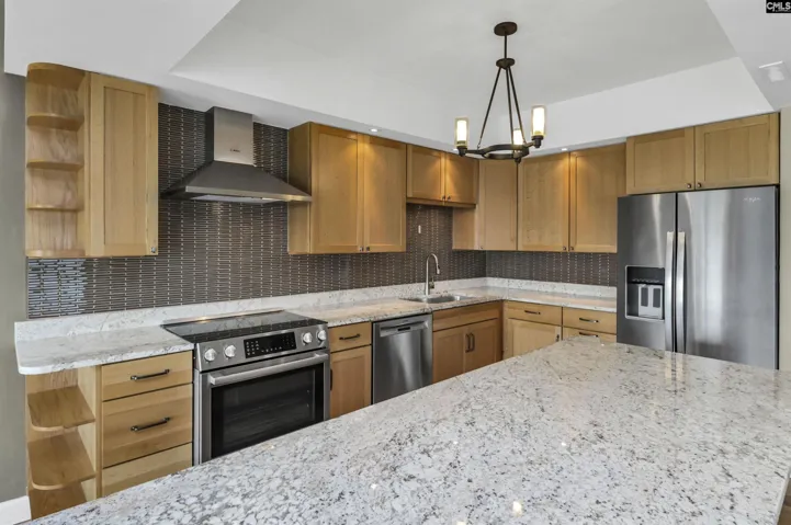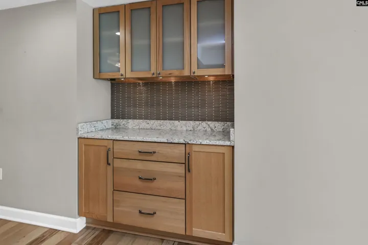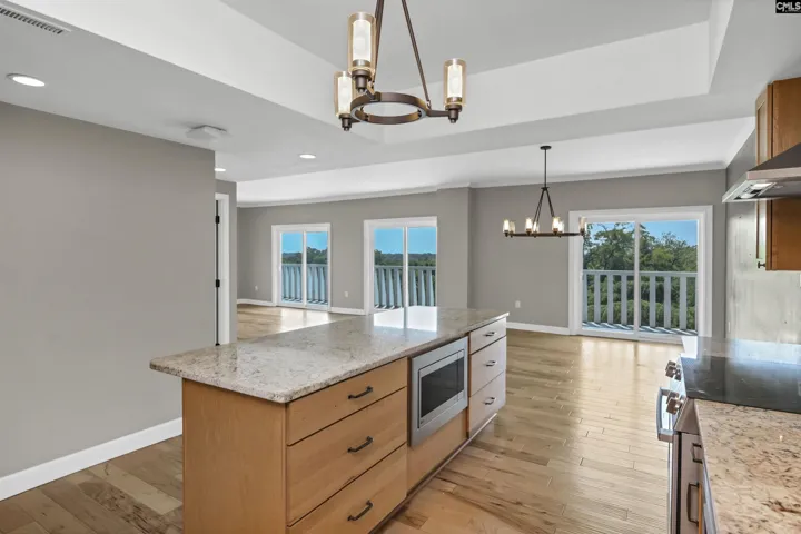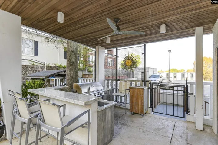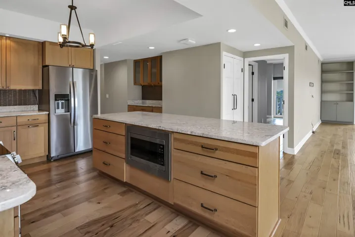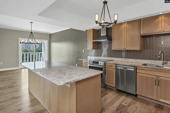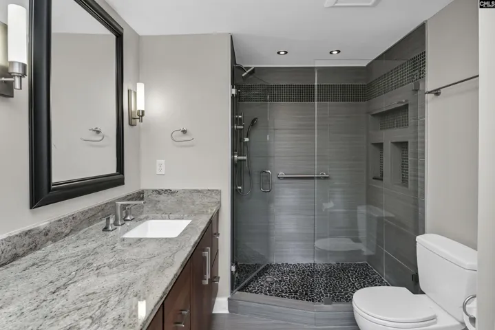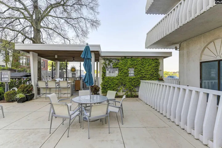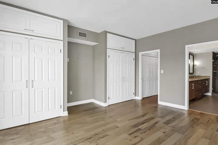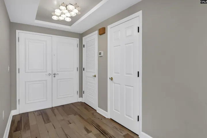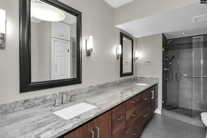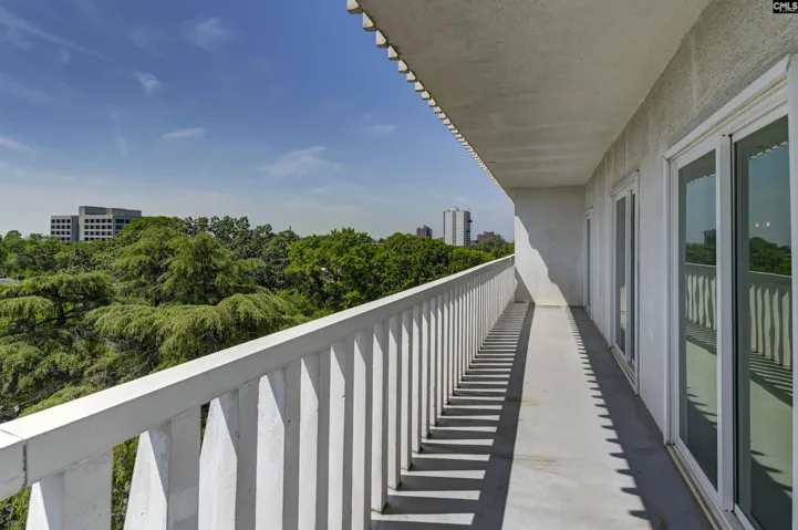 This beautifully updated, 7th floor unit is located on the southeast corner of the building – the premier location in The Heritage. The elegant interior features engineered hardwood flooring throughout and a gorgeous kitchen that opens to the dining and living areas. The kitchen features granite on the counters and huge island that’s large enough for 4 bar stools. The backsplash is tiled and the plentiful custom-built cabinets and and drawers are a pleasant, warm color. The bathrooms are luxurious – especially the master with a granite double vanity with under-vanity lighting, a multi-head walk-in shower with a natural stone shower floor. The master bedroom has his-and-her closets with additional storage above both and a remote-controlled blackout shade that covers the sliding glass doors that lead to the wraparound balcony. Access to the balcony is available from both bedrooms, and each bedroom is equipped with a blackout shade because of the sunrise on the east side of the building. The living and dining areas have access to the balcony in multiple locations. The Heritage has incredible amenities such as 24-hour security, very fine spaces for social gatherings large and small, saltwater swimming pool and outdoor cooking area, very nice exercise rooms and equipment, limited wine and spirits storage, and much more, including internet service in every unit that’s included in the HOA fee. The Heritage is less than two blocks from the University of South Carolina’s main campus and very close to the State Capitol, Vista, and Five Points. Disclaimer: CMLS has not reviewed and, therefore, does not endorse vendors who may appear in listings.