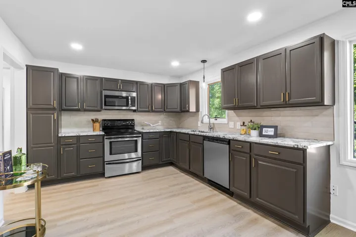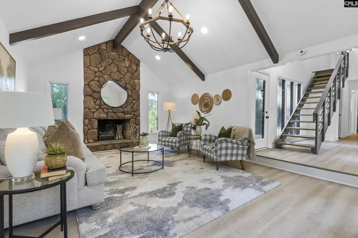 Welcome to this beautifully renovated contemporary home, originally built in 1977 and thoughtfully updated with modern finishes while preserving its unique character. Nestled in a well-established neighborhood and set along a peaceful pond, this home offers the perfect blend of rustic charm and modern comfort.Featuring 4 bedrooms, including two spacious primary suites—one on the main level and one upstairs—this layout offers exceptional flexibility and privacy. Both suites include full en suite bathrooms and walk-in closets, while the upstairs primary boasts a charming Juliet balcony overlooking the serene pond.The main level welcomes you with a stunning living room complete with vaulted ceilings, exposed wood beams, and a striking stone fireplace that serves as the heart of the home. A beautifully designed staircase adds architectural interest and timeless appeal.The updated kitchen features granite countertops, refreshed cabinetry, and ample space for a breakfast nook, flowing seamlessly into a light-filled dining room—perfect for everyday living and entertaining.Upstairs, you’ll also find a spacious bonus room over the garage, ideal for a media room, home office, or playroom.Step outside to enjoy the brand new oversized deck overlooking the pond—an ideal space for morning coffee, evening relaxation, or entertaining guests while taking in the peaceful water views.Additional highlights include a two-car garage, brand new HVAC system and water heater, fresh interior paint, and new LVP flooring throughout—offering peace of mind and true move-in ready convenience. Hydroseed has been recently applied to both the front and back yards, with new growth expected as weather conditions allow.With distinctive finishes and fixtures throughout, this one-of-a-kind home delivers warmth, character, and a truly inviting atmosphere—all in a picturesque setting. Disclaimer: CMLS has not reviewed and, therefore, does not endorse vendors who may appear in listings.